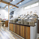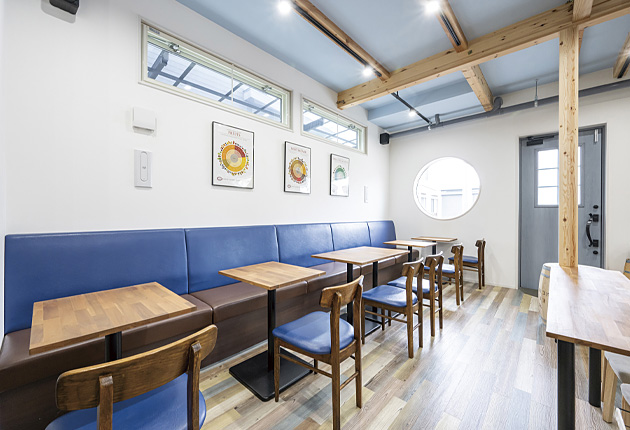 青色を基調としたスタイリッシュな外観です。店の中に入ると木の温もりを感じる居心地の良い空間が広がっています。カウンターにはたくさんの種類のコーヒー豆が生豆で並べてあり、自家焙煎の機械で焙煎して頂けます。店主の方のコーヒーに対するこだわりを感じる空間です。
