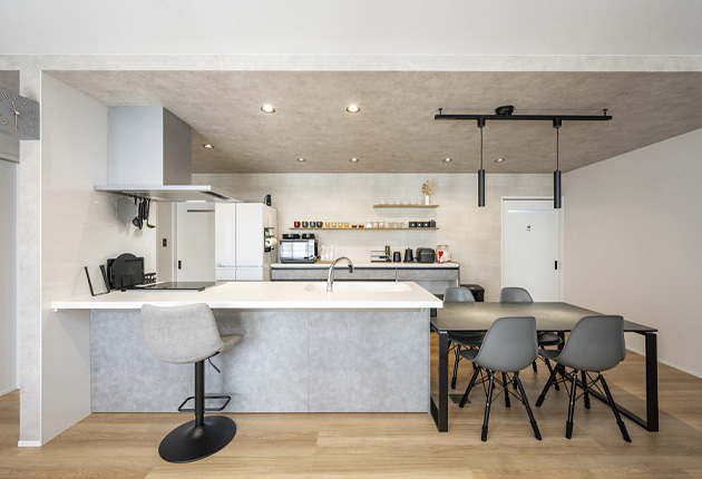 本日は西坂部町 H様のお宅を訪問しました。平屋建築のお宅でリビングに足を運ぶと施主様のセンスの良さに圧倒されました。グレーに統一されたお部屋は家具や照明、ゴミ箱や食器1つ1つに拘りがあり、その見せ方にもセンスが光ります。とてもお洒落なカフェに来た様な印象です。